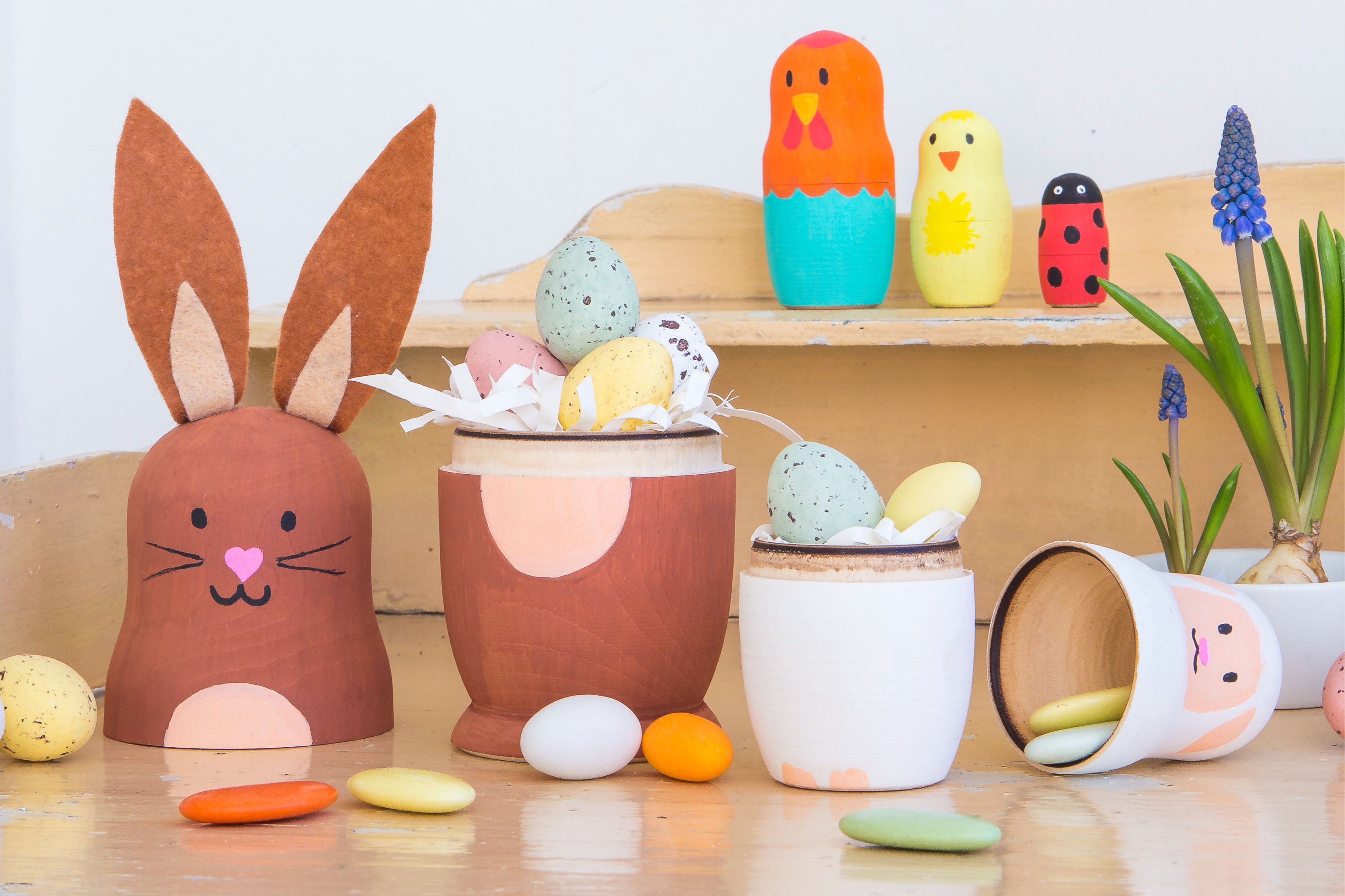 Ob als fröhliche Osterdeko oder als liebevoll gestaltetes Geschenk: Osterhase, Lamm, Küken oder Marienkäfer bringen sofort Frühlingsstimmung ins Zuhause. Wer sich nicht auf ein einzelnes Tier festlegen möchte, gestaltet einfach eine kunterbunte Osterfamilie – mit selbst bemalten Matroschka-Figuren aus Holz, die sich öffnen lassen und so für einen kleinen Überraschungseffekt sorgen. Jede Figur wird zum Unikat, mit Persönlichkeit, Farbe und Kreativität.
