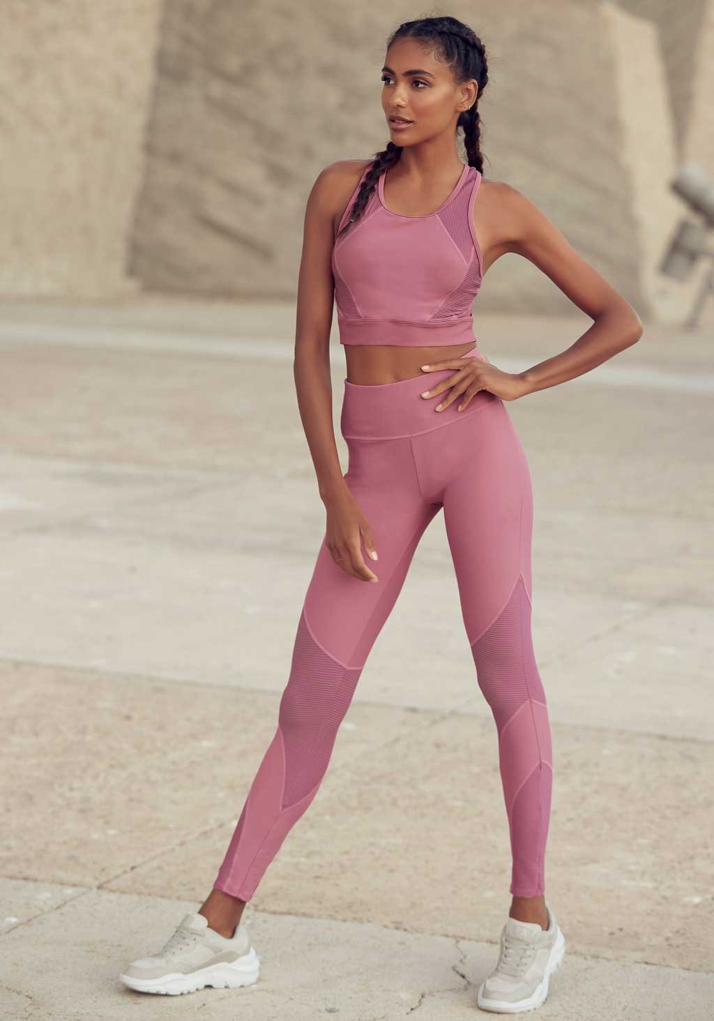 Beim Vinyasa-Yoga kommt man richtig ins Schwitzen! Anders als beim eher statischen und kräftigenden Hatha-Yoga-Stil geht es in einer Vinyasa-Stunde mit fließenden Bewegungen sehr dynamisch zu. Dabei sind flexible und atmungsaktive Outfits ein Muss. Mit der Performance-Leggings von „Lascana Active“ aus elastischem Funktionsmaterial steht der achtsamen Work-out-Session nichts mehr im Weg. Das passende Crop-Top mit Racerback und Mesh-Einsatz in der Trendfarbe Altrosa macht den sportiven Look zu einem echten Hingucker.