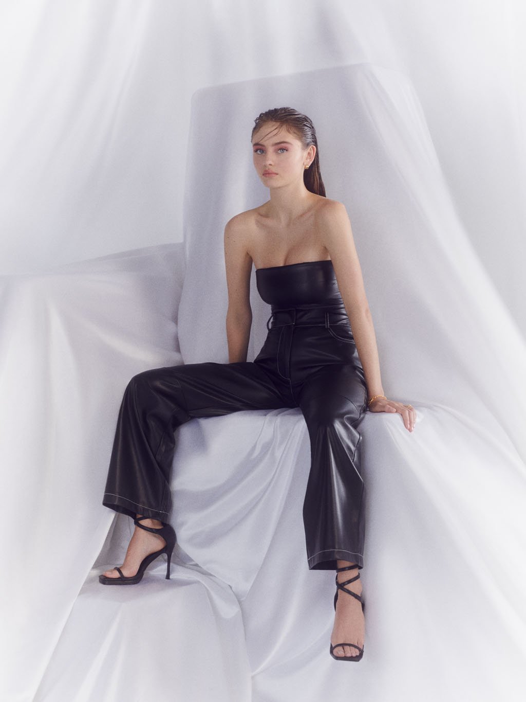 Das Ergebnis ist eine junge und moderne Kollektion, die mit Oversized-Passformen, aber auch mit neuen Material-Highlights wie Satin und Plissee hervorsticht. Das Ziel war es, eine coole, lässige und easy Atmosphäre zu schaffen. Abgerundet wird die Kollektion durch besondere Key-Pieces: ein veganes Leder-Set bestehend aus Hose, Top und Shirt, eine übergroße vegane Lederjacke und eine Puffer Jacket aus veganem Leder.