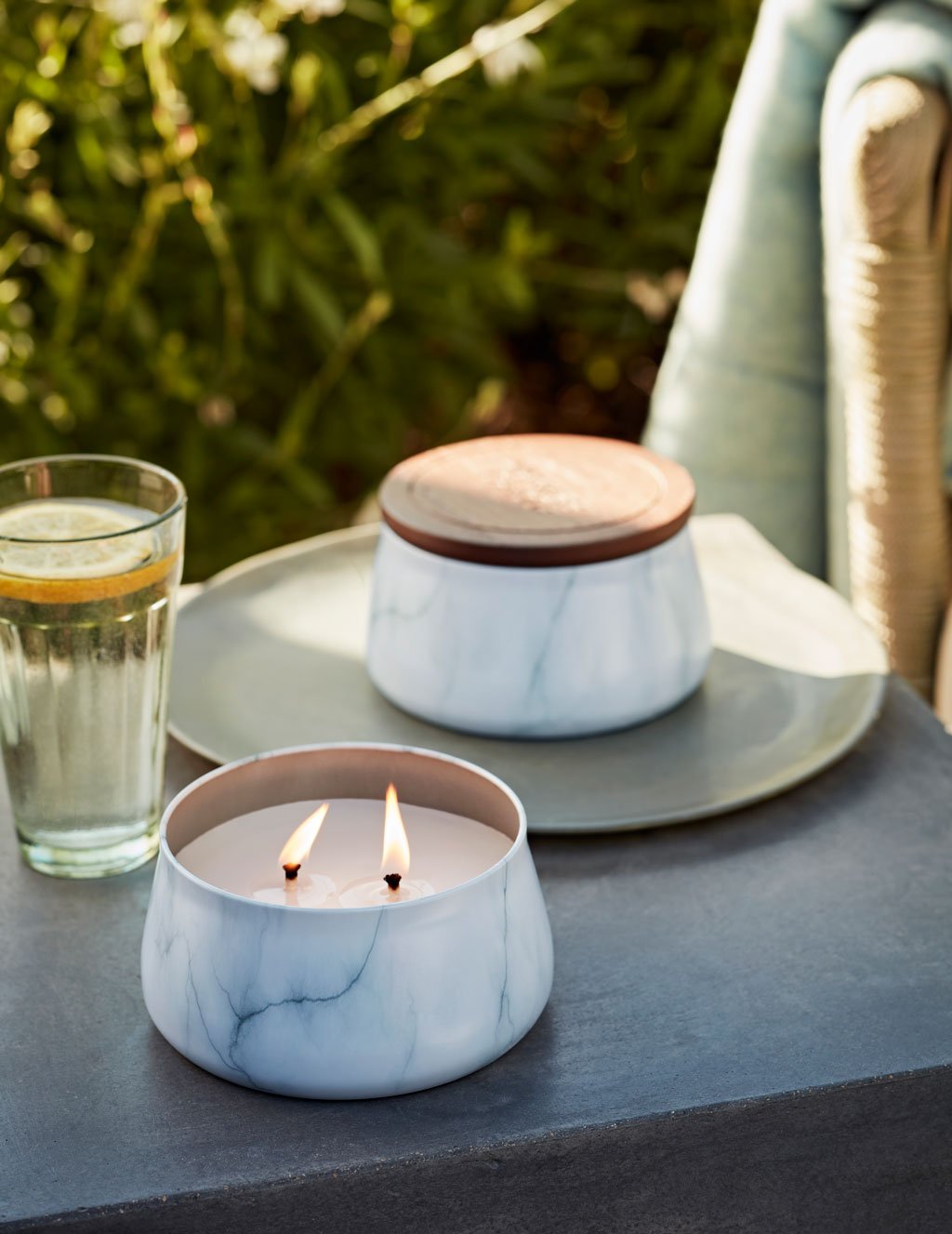 Die Outdoor-Collection besteht aus vier neuen, ausgewählten Düften, die mit Zitronengras und ätherischen Ölen einen entspannenden Duft kreieren, welcher zusätzlich insektenabweisend ist. Das Wachs hat einen höheren Schmelzpunkt, um den Wetterbedingungen zu trotzen, und die Dochte wurden speziell entwickelt, um im Freien zu brennen.