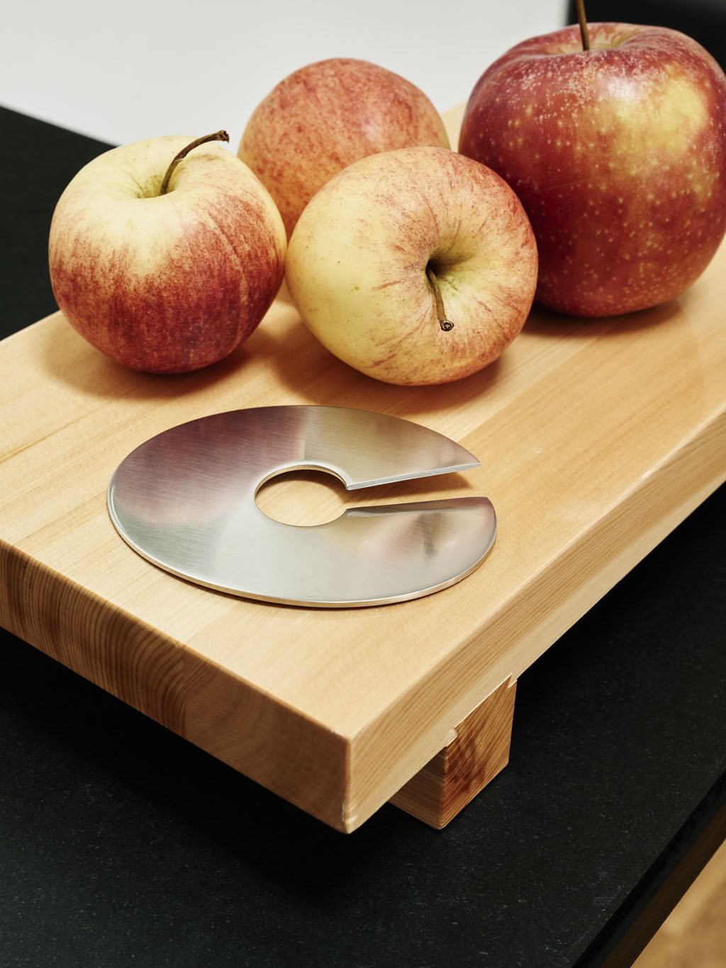 Mit dem raffiniertern Mono Giro, lassen sich Äpfel spiralförmig um den Kern schneiden. Bleibt der Giro auf dem angeschnittenen Apfel liegen, wird der Apfel weder braun noch trocken.